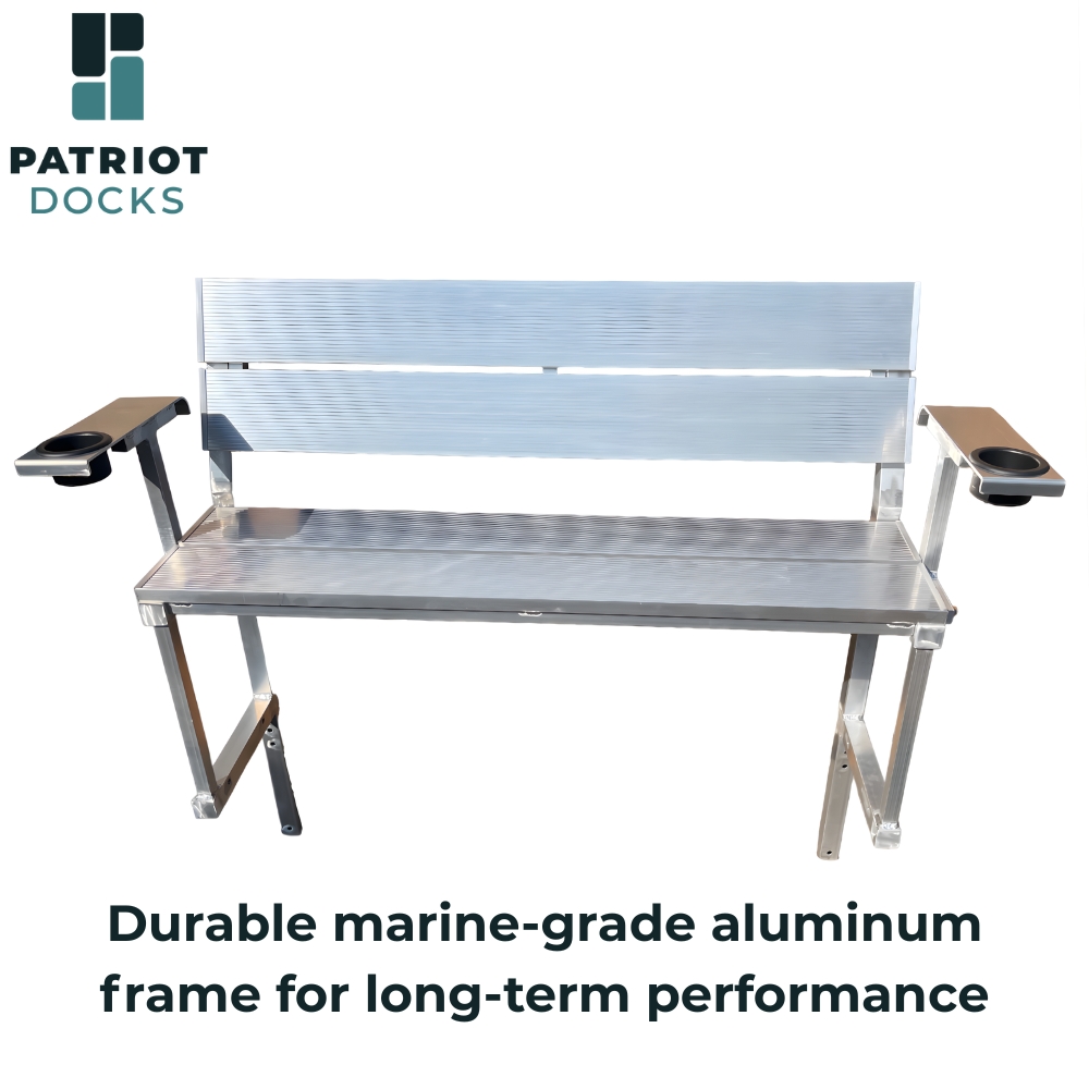 The Dock Bench is a great way to add usefulness to the end of your dock. Take a seat and watch the sunset! Its the first accessory to find after building your dock. Find an affordable solution for seating on your dock that matches the frame and decking. These boat dock benches feature a marine grade aluminum frame with pre-drilled mounting holes that match with your dock mounting holes, and a mill finish seat with armrests and cupholders. Measures 4ft wide. Benches mount to the dock frame, and when adding a bench to a Jack Dock, simply use the pre-drilled holes on the 4ft side of the dock frame.