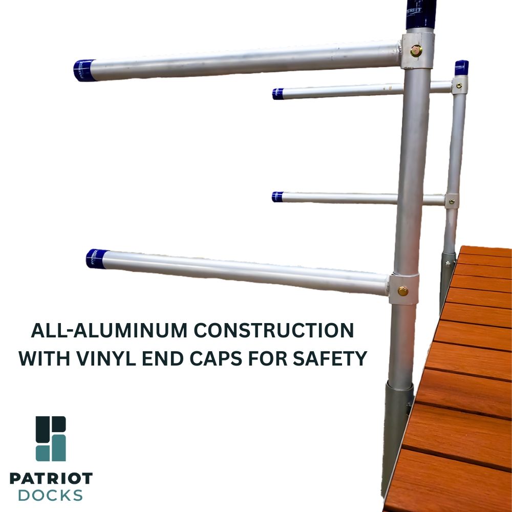 The Double Kayak Rack is a dock-side storage rack for two kayaks, SUP boards, or canoes. Safely store your kayaks with a strapped aluminum rack beside the dock.