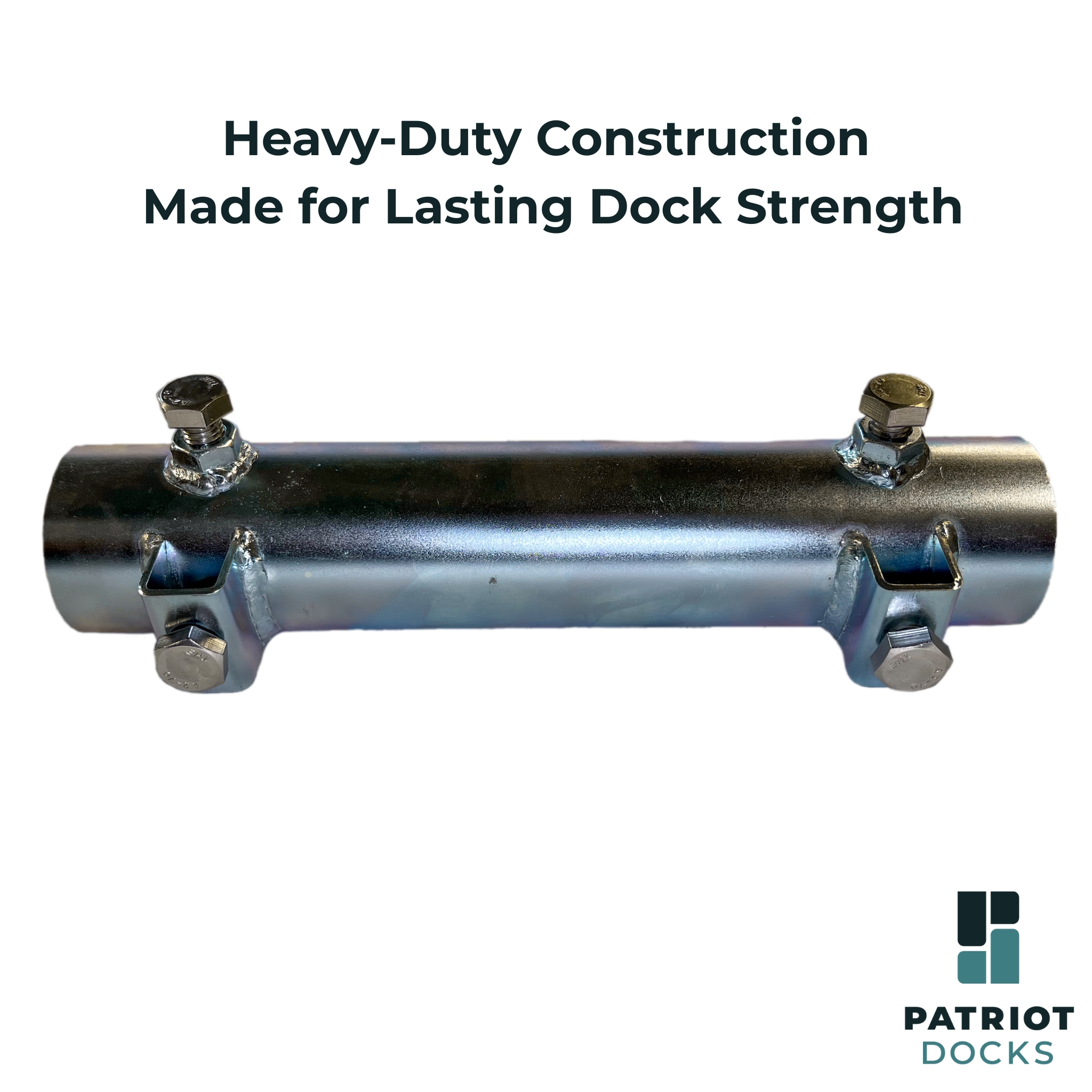 A Pipe Holder is a dock pipe sleeve that allows you to mount a new galvanized pipe to support your dock. Add Pipe Holders as dock supports for your dock! Take your pick of the Pipe Holder for Truss Frames or Low Profile frames. The difference between these pipe holders is the height of the frame to which they attach. That is to say, the dock pipe sleeve for trusses mount to our stationary and rolling dock frames or tall frames. Conversely, the LowPRO pipe holders mount to our Floating Dock frames or alternative frames as small as 4 inches tall. Both styles accommodate galvanized pipe up to 2″ OD. Both dock pipe sleeves allow for full adjustment along the entire height of the pipe.